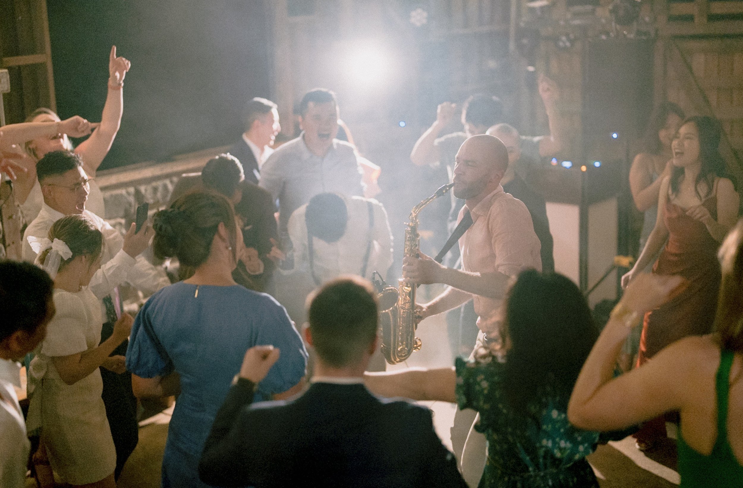 I know that a DJ plays a crucial role in setting the right mood for your night. If you have a DJ with no vibe and looks like they don’t want to be there, you’ve got a problem. I am not that guy. I’ll create a vibrant party atmosphere by playing all of your favourite tunes, reading the room, and inject some sax on the dance floor to really bring the house down (which also creates some amazing dance floor photos). I can also take requests from your guests (if you’re happy for this), and seamlessly mix these live into my set to ensure we see some ripping dance moves.